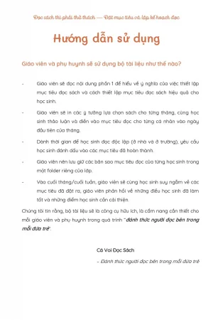 - Dành thời gian để học sinh đọc độc lập (ở nhà và ở trường), yêu cầu học sinh đánh dấu vào các mục tiêu đã hoàn thành.