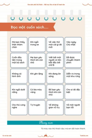 - Giáo viên sẽ in các ý tưởng lựa chọn sách cho từng tháng, cùng học sinh thảo luận và điền vào mục tiêu đọc cho từng cá nhân vào ngày đầu tiên của tháng.
